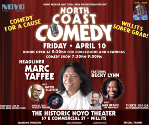 Marc headlines the Willits High School Sober Grad fundraiser show at Noel Theatre. Doors open 5:30, showtime is 7:30.