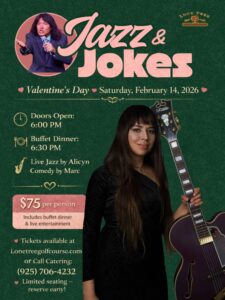 Marc and Alicyn Yaffee take the stage for a night of music and comedy.  The show featuries Alicyn’s sumptuous jazz guitar and vocal along with Marc’s standout standup.  This event includes a full dinner and no host bar.