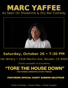 Marc headlines the monthly Trek Winery comedy series presented by Marin Comedy. Featuring Will be Samson Koletkar.